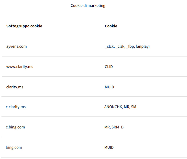 I cookie di marketing sono utilizzati per monitorare i visitatori nel Sito con lo scopo di far visualizzare annunci pertinenti per singolo Utente. Come da normativa, per l'installazione dei cookie è richiesto il tuo consenso. Quando accedi al Sito viene visualizzato in evidenza un banner, che informa che sul Sito sono utilizzati dei cookie di marketing di terze parti. Cliccando sul pulsante "Accetta e Chiudi" acconsenti all'uso dei cookie. Se non vuoi ricevere tali cookie deseleziona la relativa casella nel banner o clicca il pulsante "Rifiuta e Chiudi". Puoi bloccare l'installazione dei cookie senza che la possibilità di visitare il Sito e fruire dei suoi contenuti sia compromessa. Se disattivi i cookie di marketing non significa che non riceverai più pubblicità sul Sito o su altri siti. I banner che visualizzerai sugli altri siti potrebbero non rispecchiare i tuoi interessi o le preferenze sul browser che stai utilizzando. Per avere maggiori informazioni su ciascun cookie di terza parte leggi le informative consultabili tramite l'elenco dei partner riportato all’interno del cookie banner del Sito. Per disattivare in maniera selettiva i cookie, clicca in calce alla presente pagina nella sezione “Rinnova o modifica la tua autorizzazione ai cookie".
